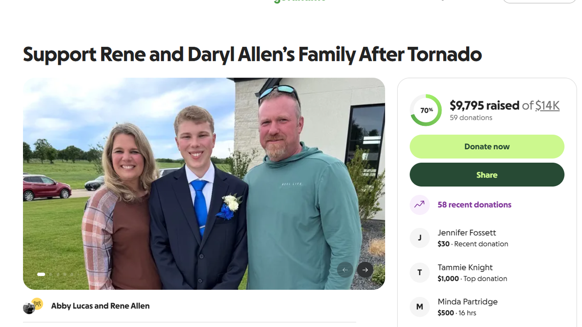 “The tornado destroyed everything they owned, including their cars, camping RV, and all of their belongings,” the GoFundMe says. “Miraculously, they survived, but they are now facing a long and difficult road to recovery.”